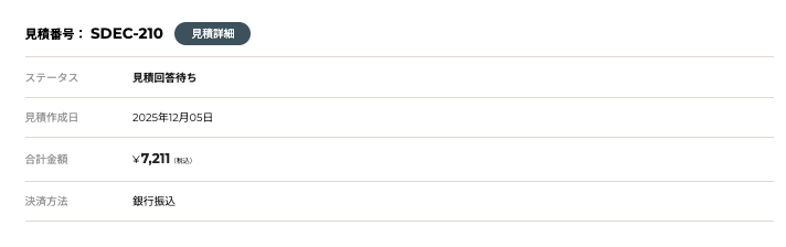 ・マイページ内「見積履歴」にて「見積書ダウンロード」ボタンを押下してください。PDFでの見積書をダウンロードいただけます。