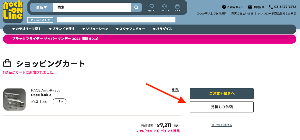 ・カート画面にてBtoB会員様向けに表示される「見積依頼」ボタンを押下してください。