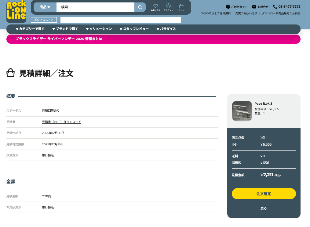 ・ご作成いただいた見積からご注文いただく場合は、マイページ内「見積履歴」にて対象となる見積の「見積詳細/注文」ボタンを押下してください。