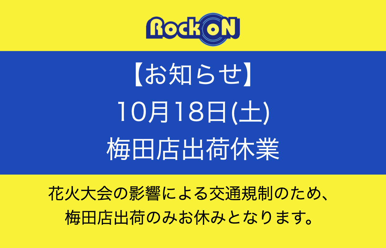 10月18日(土)のみ梅田店での出荷業務をお休みいたします。